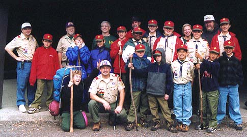 HAWK RIDGE OUTING - NOVEMBER 5 to 7, 1999Six adult leaders and fifteen scouts departed Contempo Friday night for a two day outing at Anthony Chabot Regional Park. After arriving at the locked gate leading to the group camp site all fifteen scouts hitched up their backpacks and started down the trail to Hawk Ridge. The scouts completed a night hike approximately 1.2 miles with their equipment lead by Chris G. and Gavin M. Chris and Gavin scouted the trail the previous weekend. The adult leaders drove into camp and had peace and quite for the next 30 minutes until the scouts arrived.